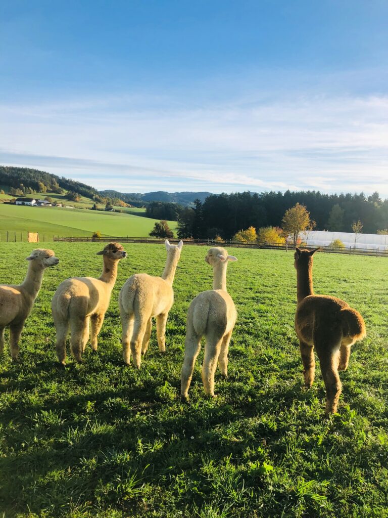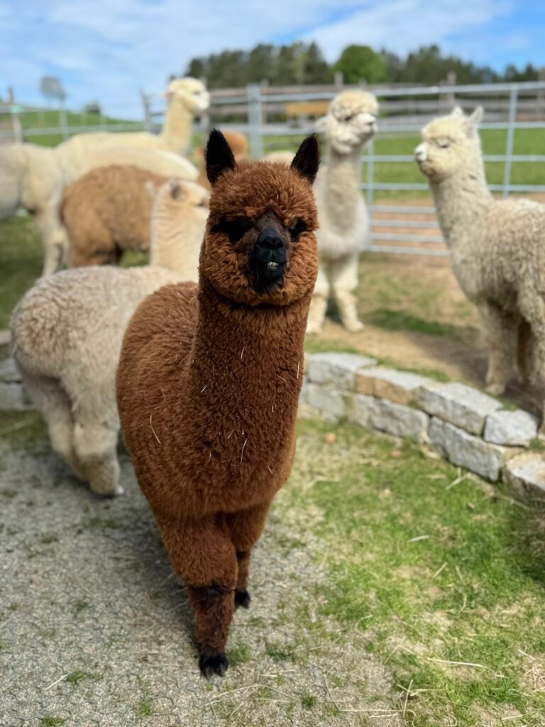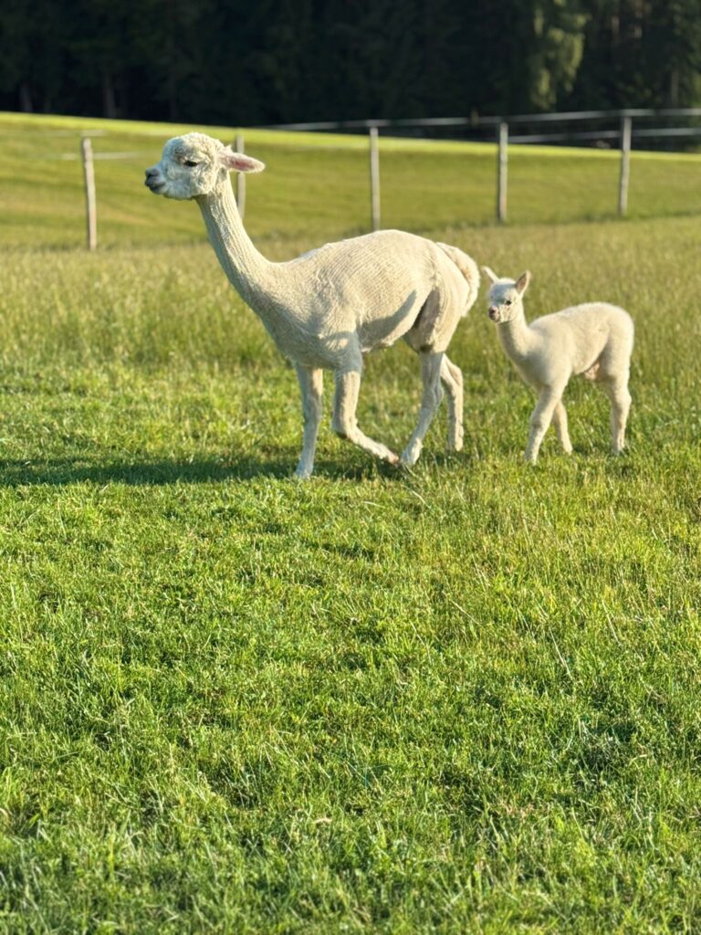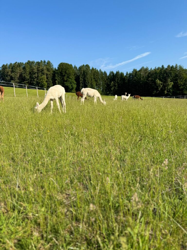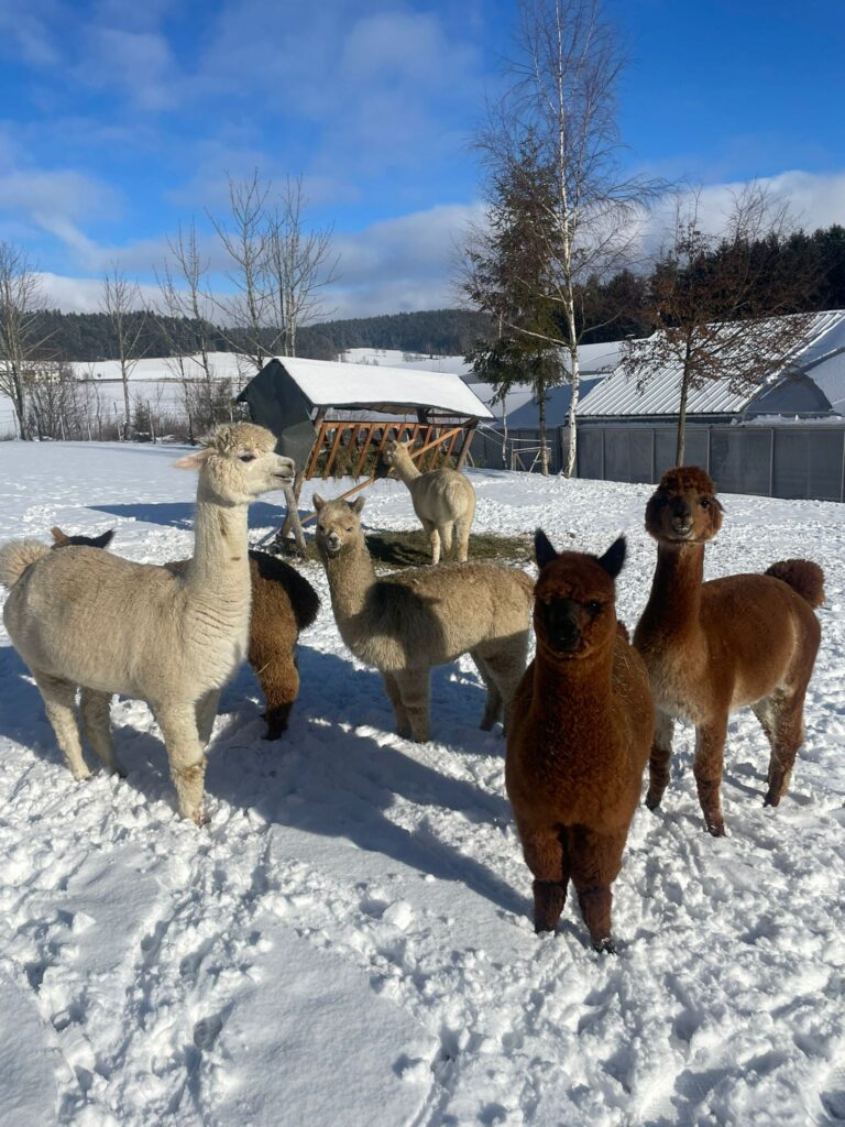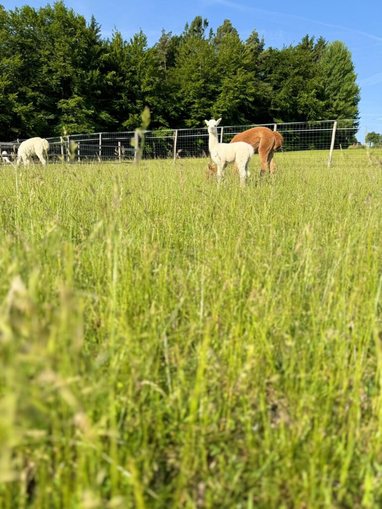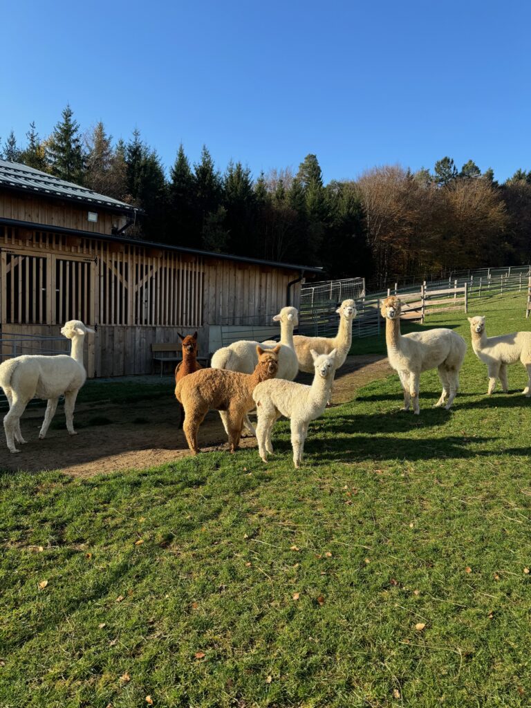 Schafen oder Ziegen entdeckten wir unsere Liebe zu Alpakas. Heute leben 13 Alpakas in unserer Gärtnerei, wo Besucher sie entspannt auf der Weide beobachten können.