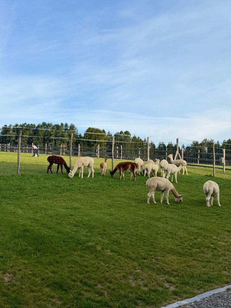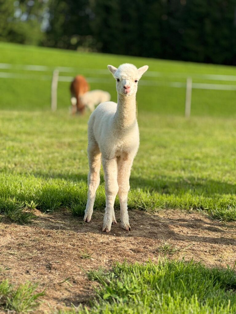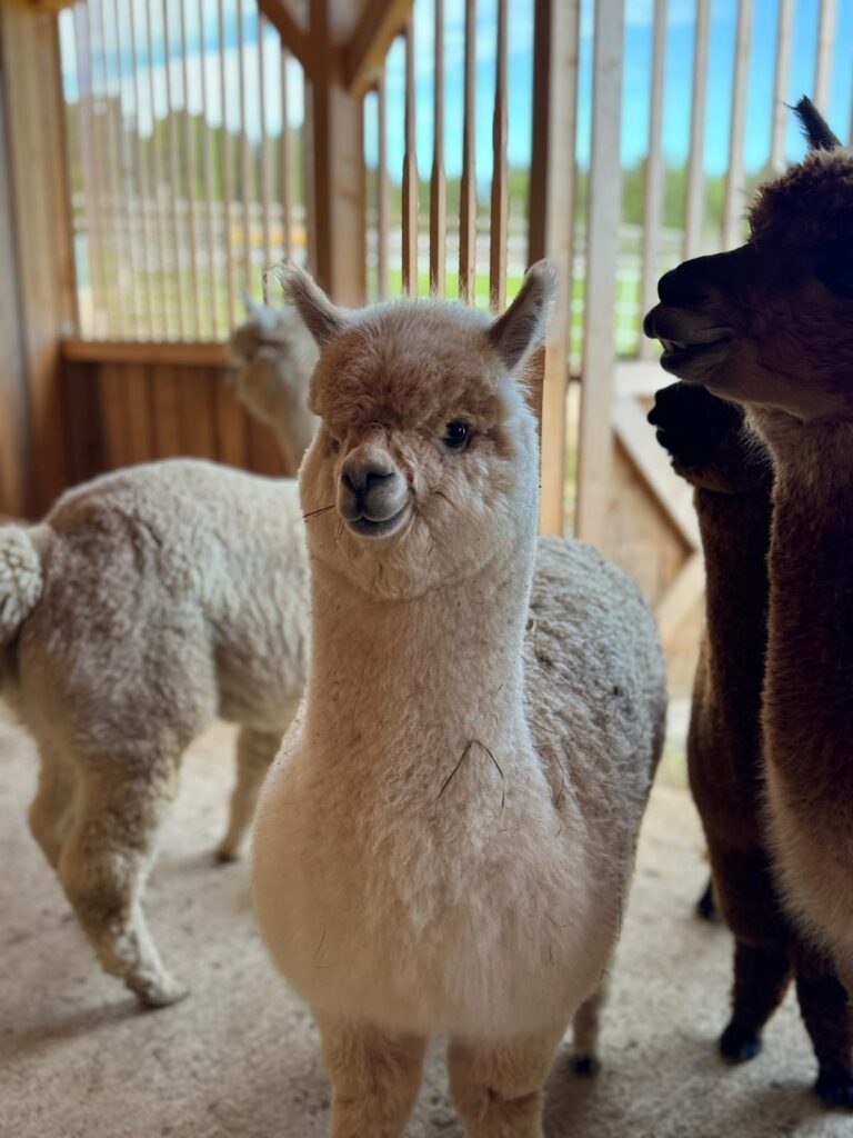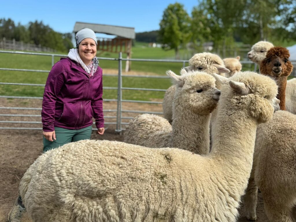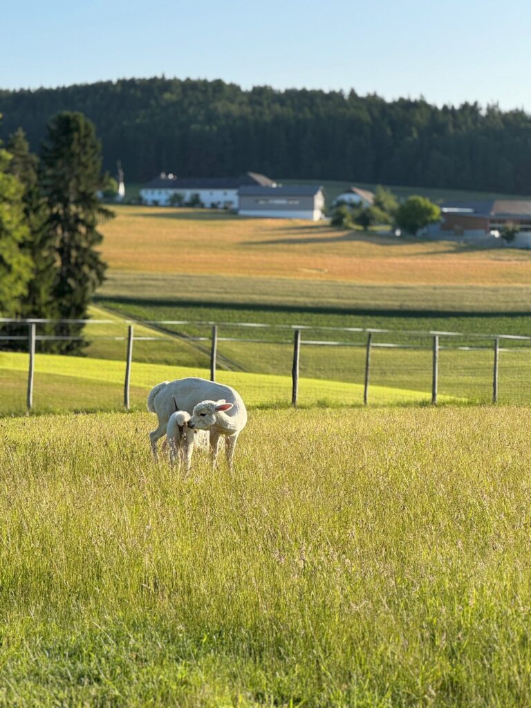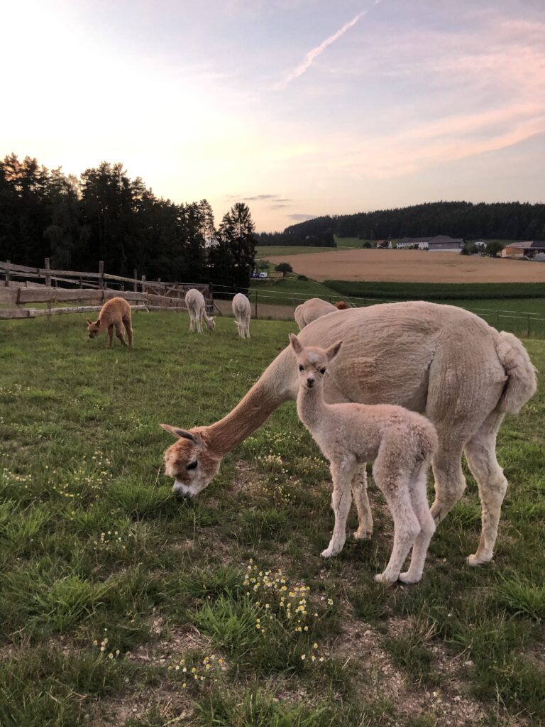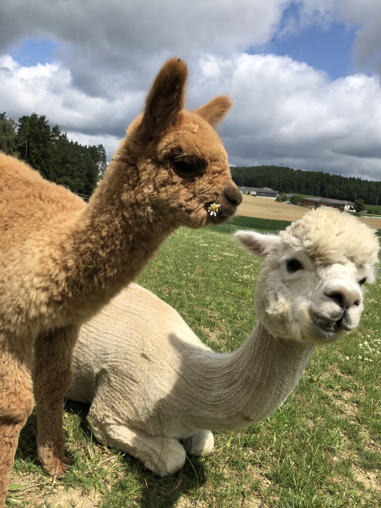Schafen oder Ziegen entdeckten wir unsere Liebe zu Alpakas. Heute leben 13 Alpakas in unserer Gärtnerei, wo Besucher sie entspannt auf der Weide beobachten können.